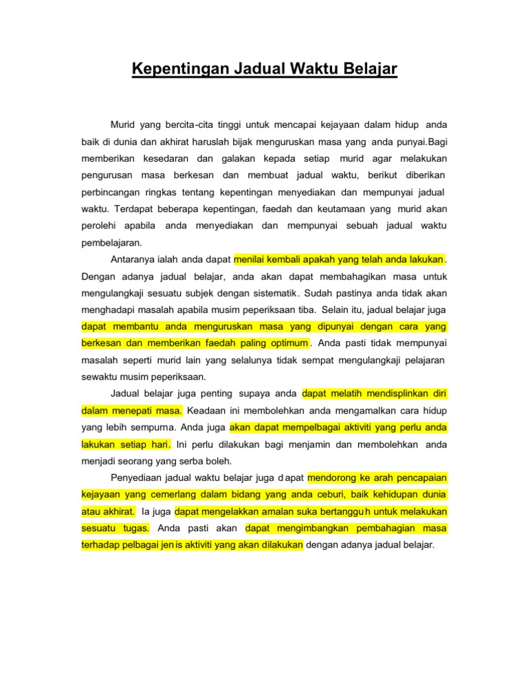 Kepentingan Jadual Waktu Belajar Pdf