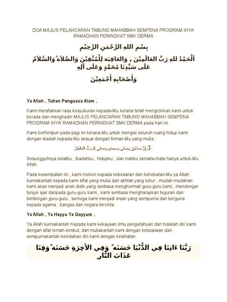 Doa Majlis Pelancaran Tabung Mahabbah Sempena Program Ihya Pdf